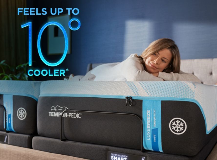 TEMPUR-Breeze® mattresses feature exclusive cooling technology that quickly absorbs and dissipates excess body heat so you can enjoy cool, comfortable sleep every night.